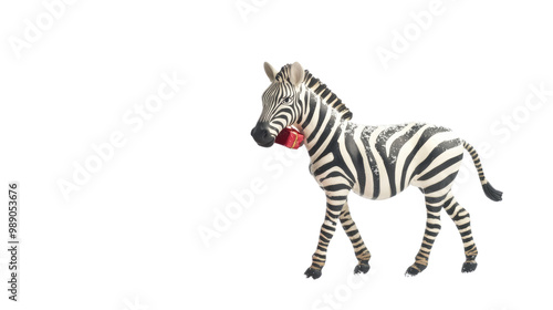 Obraz premium Zebra standing alone on a white background in a cartoon style, showcasing its...