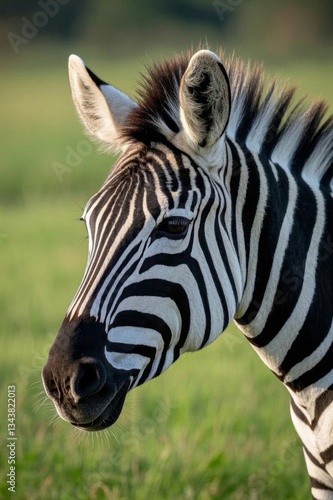 © haiqiang, Naklejka premium zebra standing in a field of grass with a blurry background