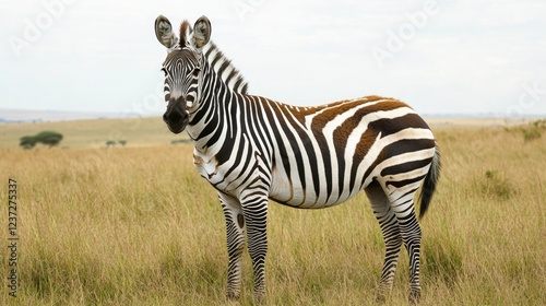 © Natalia, Fototapeta premium Zebra standing in grassy field, enjoying natural environment.