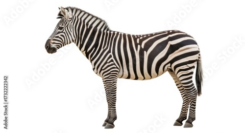 © Daus, Fototapeta premium Zebra Standing in White Background with Black and White Stripes