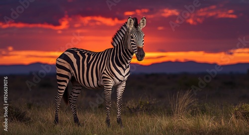 © vxnaghiyev, Fototapeta premium zebra standing with a strikingly colorful scenic backdrop