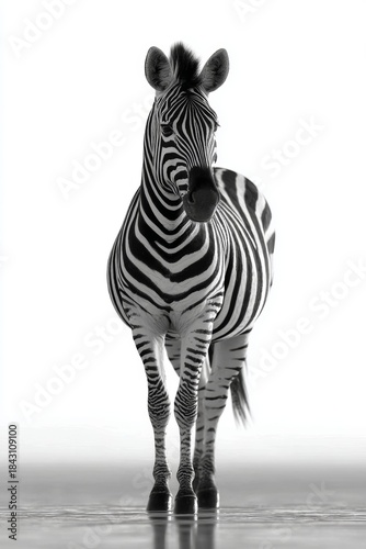 Obraz premium Zebra stands in front of white background during daytime, showing stripes and...