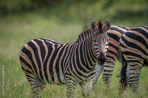 Naklejka premium Zebra starring at the camera.