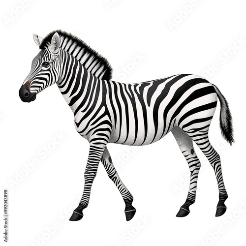 © DesignVectX, Fototapeta premium Zebra walking forward with stripes visible, isolated on transparent background