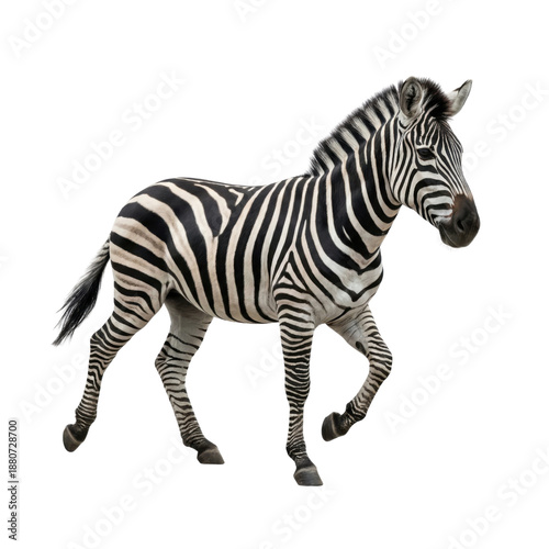 Fototapeta premium Zebra Walking Isolated on White Background