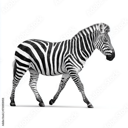 © PeterSailore, Fototapeta premium Zebra walking isolated, white background cut out png