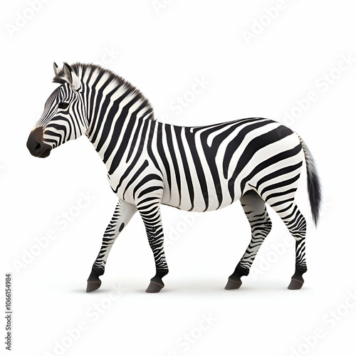 Fototapeta premium Zebra walking on white background, black and white, stripes, mammal, animal,...