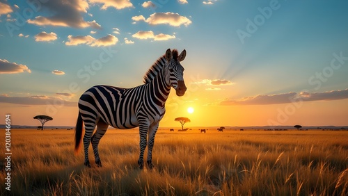 © krishna, Naklejka premium Zebra wildlife savanna sunset landscape