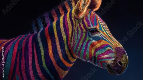 Obraz premium Zebra with multicolored stripes standing against dark background