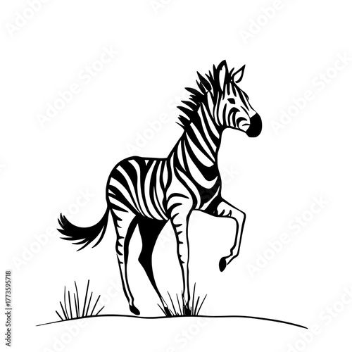 © Aquir, Naklejka premium Zebra. Zebra simple black and white line art vector logo