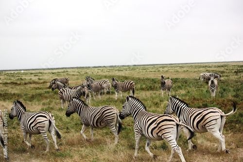 © ClaraNila, Obraz premium Zebras auf der Flucht im Etosha Nationalpark - Namibia