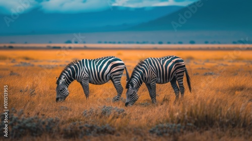 © Gajah, Fototapeta premium zebras grazing in the African savannah