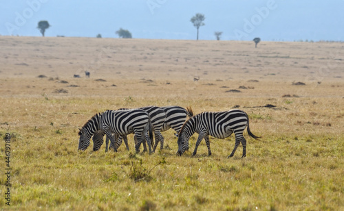 © nudda, Fototapeta premium Zebras in savanna on safari in Kenya national park. Wild animals in nature