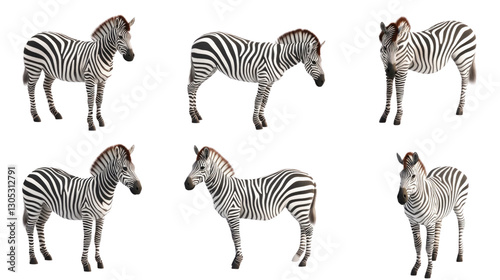 © yanapopovaiv, Obraz premium Zebras in various poses showcasing their distinct stripes and unique behavior in a natural setting, cut out