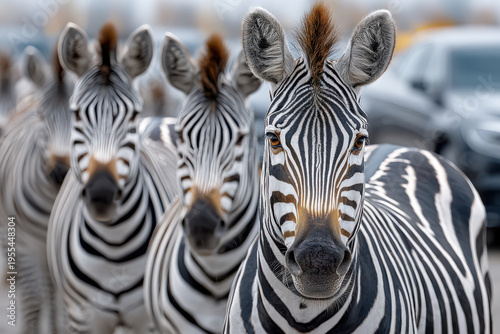 © YouraPechkin, Obraz premium Zebras standing confidently in a line at a wildlife reserve during daylight hours