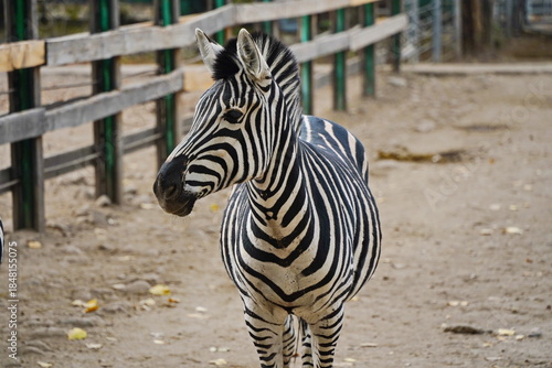 © Vladimir, Fototapeta premium Zebras walk in a special enclosure at the zoo.