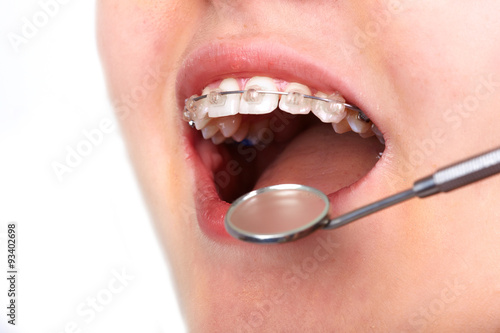© grinny, Naklejka premium Zęby z zamkami ortodontycznymi.