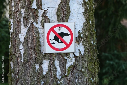 © joerghartmannphoto, Fototapeta premium Zeichen "Kein Hundeklo" an einer Birke
