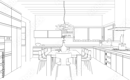 Obraz premium Zeichnung moderne Küche