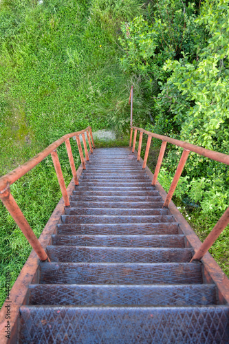 © Ruslan Kudrin, Fototapeta premium Zejście z zardzewiałej drabiny