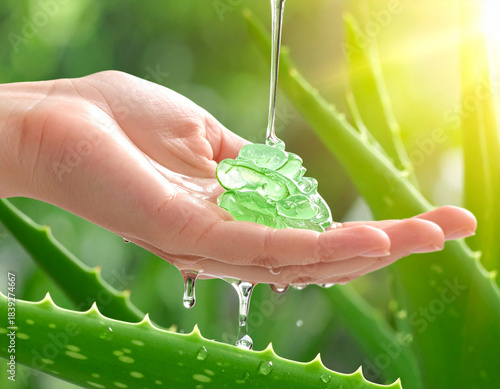 Naklejka premium Żel aloesowy na dłoni