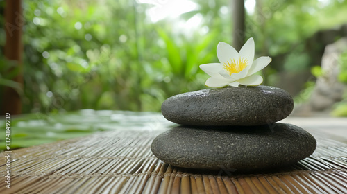 © mahmood, Obraz premium Zen garden featuring waterlilies and massage stones