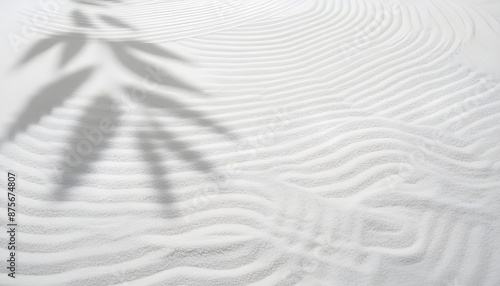Obraz premium Zen Garden white sand surface with leaf shadow on circles