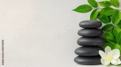 Obraz premium Zen Garden with Stacked Stones and Greenery on White Background