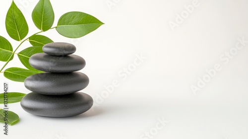 Fototapeta premium Zen Harmony Stones and Green Leaves Wellness Still Life Background Serenity...