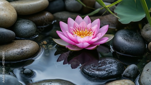 Fototapeta premium Zen-Inspired Pink Lotus in Tranquil Waters