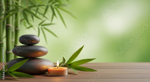 Obraz premium Zen Spa Scene: Bamboo, Stones, Candle on Wood