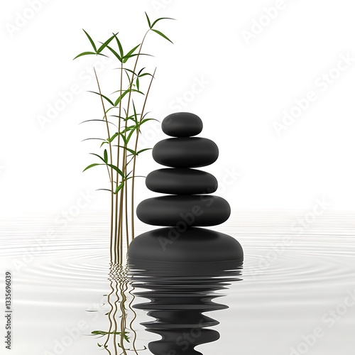 © Sus, Obraz premium Zen stones, bamboo, water reflection