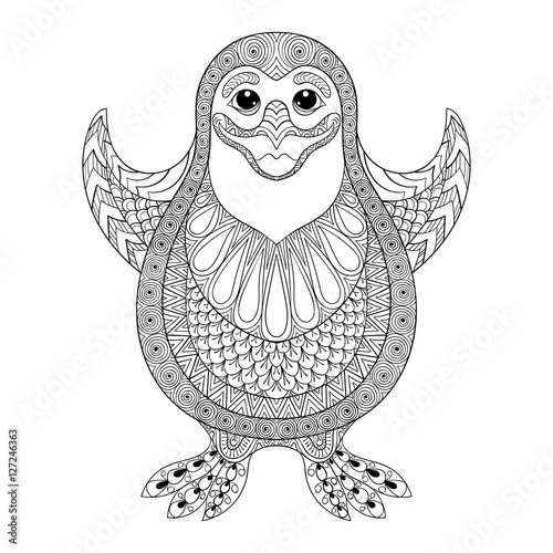 © ipanki, Fototapeta premium Zentangle stylized Penguin. Vector the cheerful penguin wants t