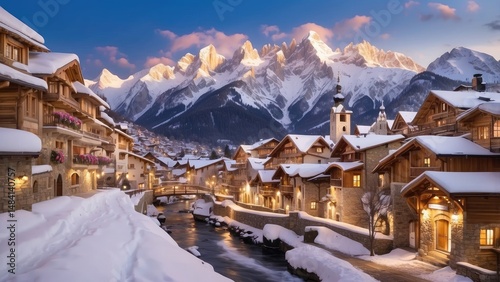 © Arif, Fototapeta premium "Zermatt Winter Morning View with Snow-Covered Matterhorn Mountain"