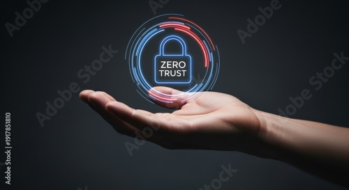 Fototapeta premium Zero Trust Security Concept: Hand Holding Digital Padlock Symbol for Network...