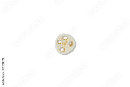 Fototapeta premium Zero waste concept. One natural sponge on isolated white background. Flat...