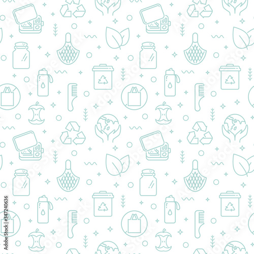 Fototapeta premium Zero waste seamless pattern with line icons. Vector background.