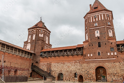 © Khrystsina, Fototapeta premium Zespół zamkowy w Mirze na zewnątrz. Miejsce światowego dziedzictwa UNESCO na Białorusi