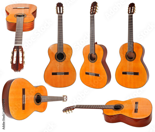 Obraz premium zestaw klasycznych gitar akustycznych na białym tle