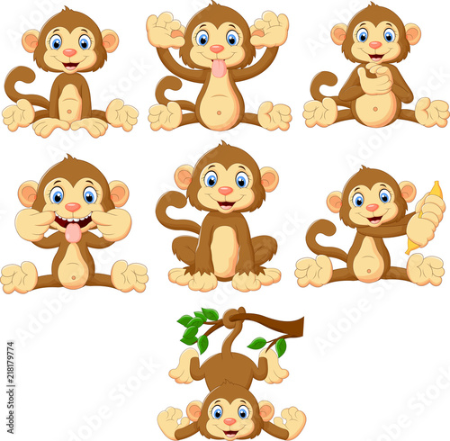 © tigatelu, Obraz premium Zestaw kolekcja małpy kreskówka