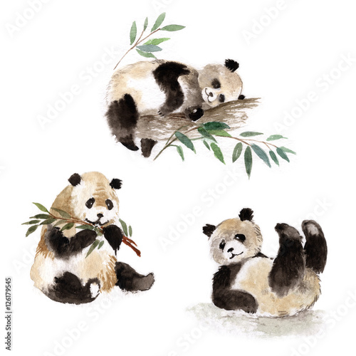 © muara, Fototapeta premium Zestaw pandy wielkie, akwarela