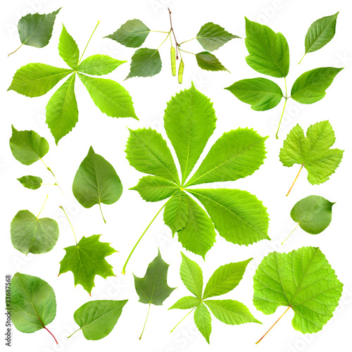 © belinka, Obraz premium Zestaw zielonych liści na białym tle