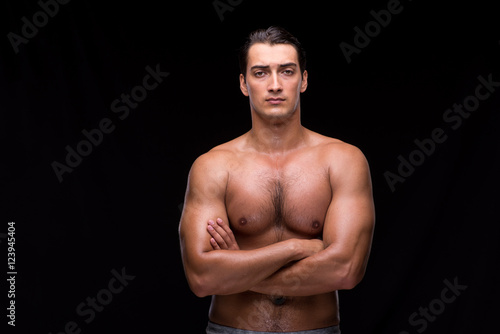 Fototapeta premium Zgrywanie muskularny mężczyzna na czarnym tle