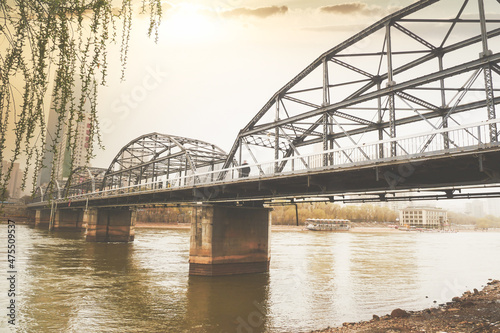 Naklejka premium Zhongshan Iron Bridge on the Yellow River in Lanzhou, China