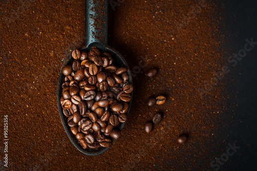© r_am, Obraz premium Ziarna kawy i mielona kawa
