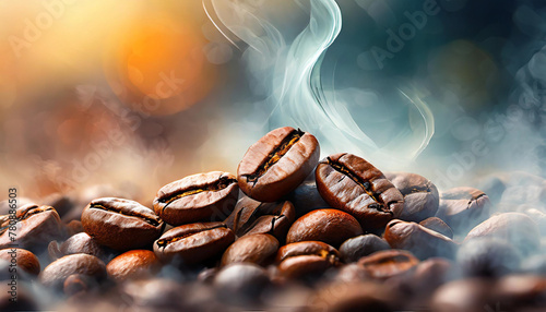 Fototapeta premium Ziarna palonej kawy, abstrakcja, tapeta, dekoracja. Generative AI