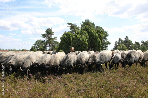 © S. Lorenzen-Mueller, Obraz premium Ziegen bewachen die Heidschnucken in der Lüneburger Heide