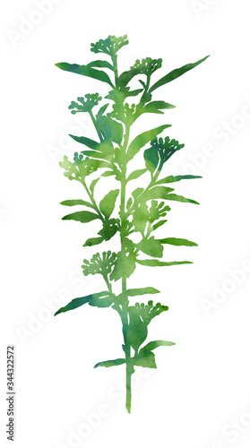 © tofutyklein, Fototapeta premium Zielona gałąź akwarela na białym tle na białym tle. Dekoracyjny obraz do kreatywnego projektowania kartek, zaproszeń, banerów, stron internetowych, plakatów itp. Piękna ręcznie malowana ilustracja.