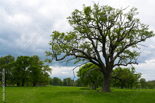© Dave Bonehill, Obraz premium Zielone drzewo z burzowym niebem