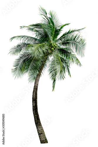 © sirawut, Fototapeta premium Zielone liście palmy, zginanie drzewa kokosowego na białym tle